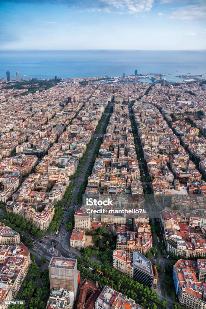 푸른 하늘 스페인 바르셀로나 주요 거리와 도시 스카이라인의 항공 보기 공중 뷰에 대한 스톡 사진 및 기타 이미지 공중 뷰 바르셀로나 스페인 0명 Istock